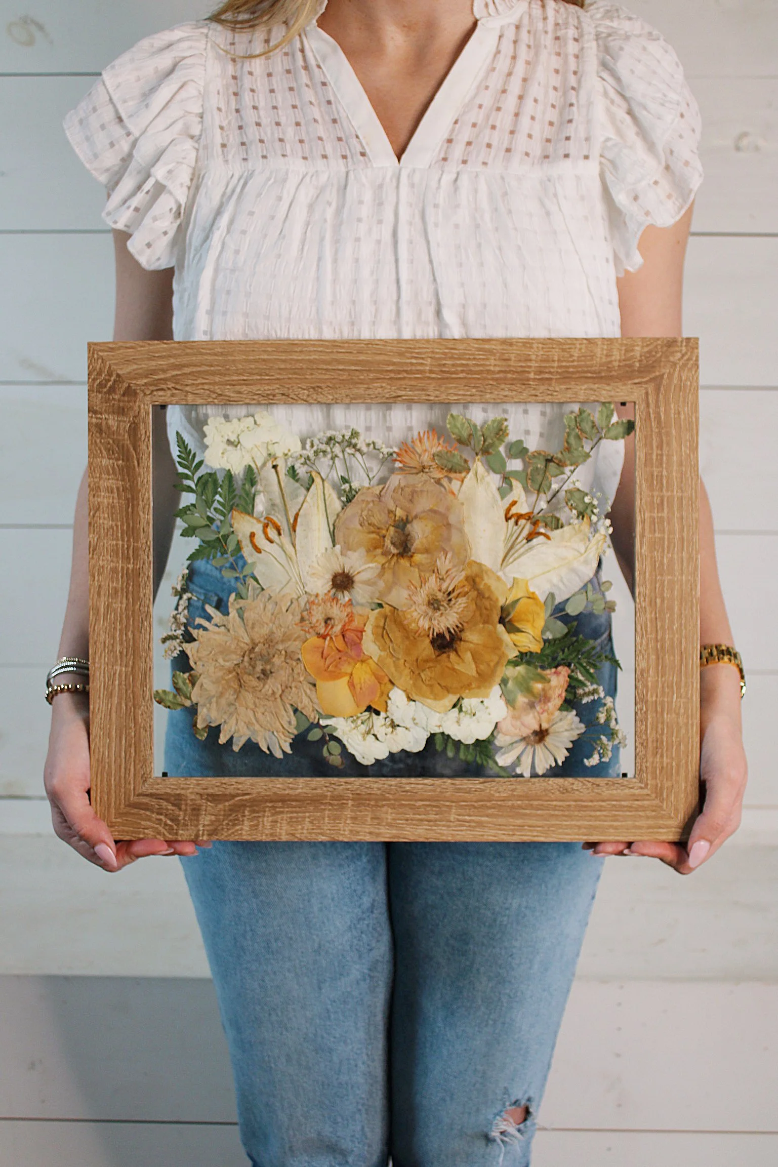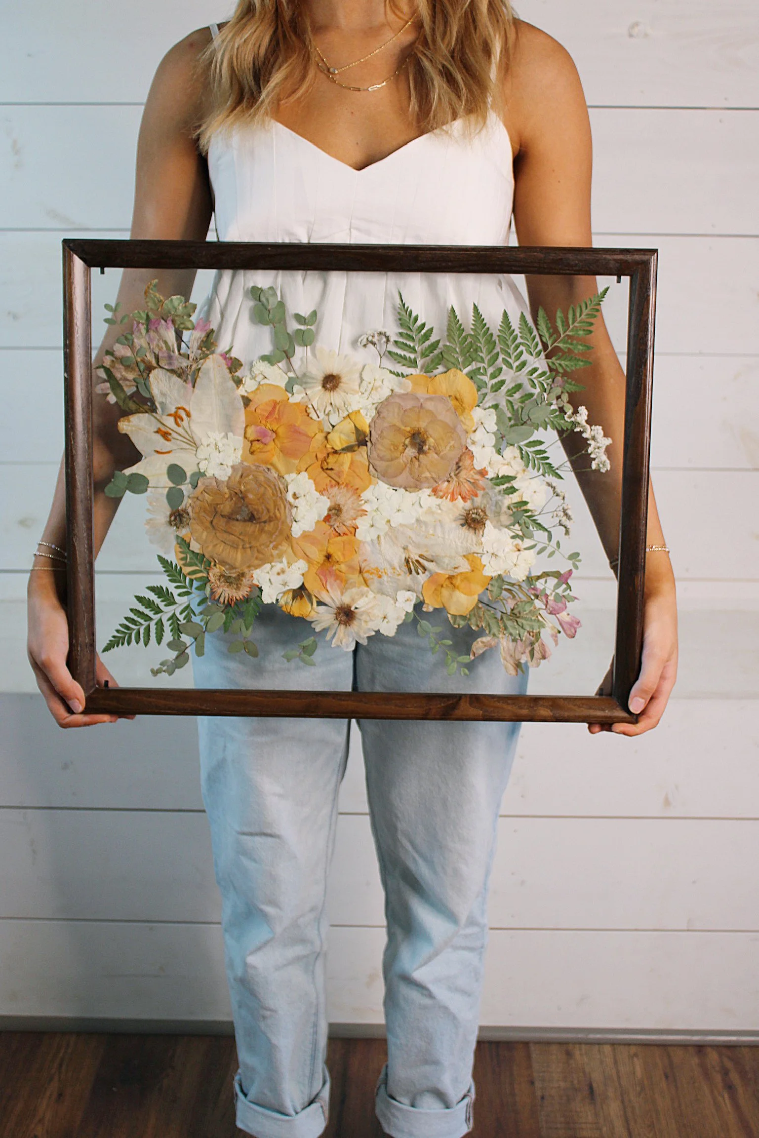 Here at the Flower Exchange Design Co., we press, design, and frame your flowers into a one-of-a-kind piece of art.